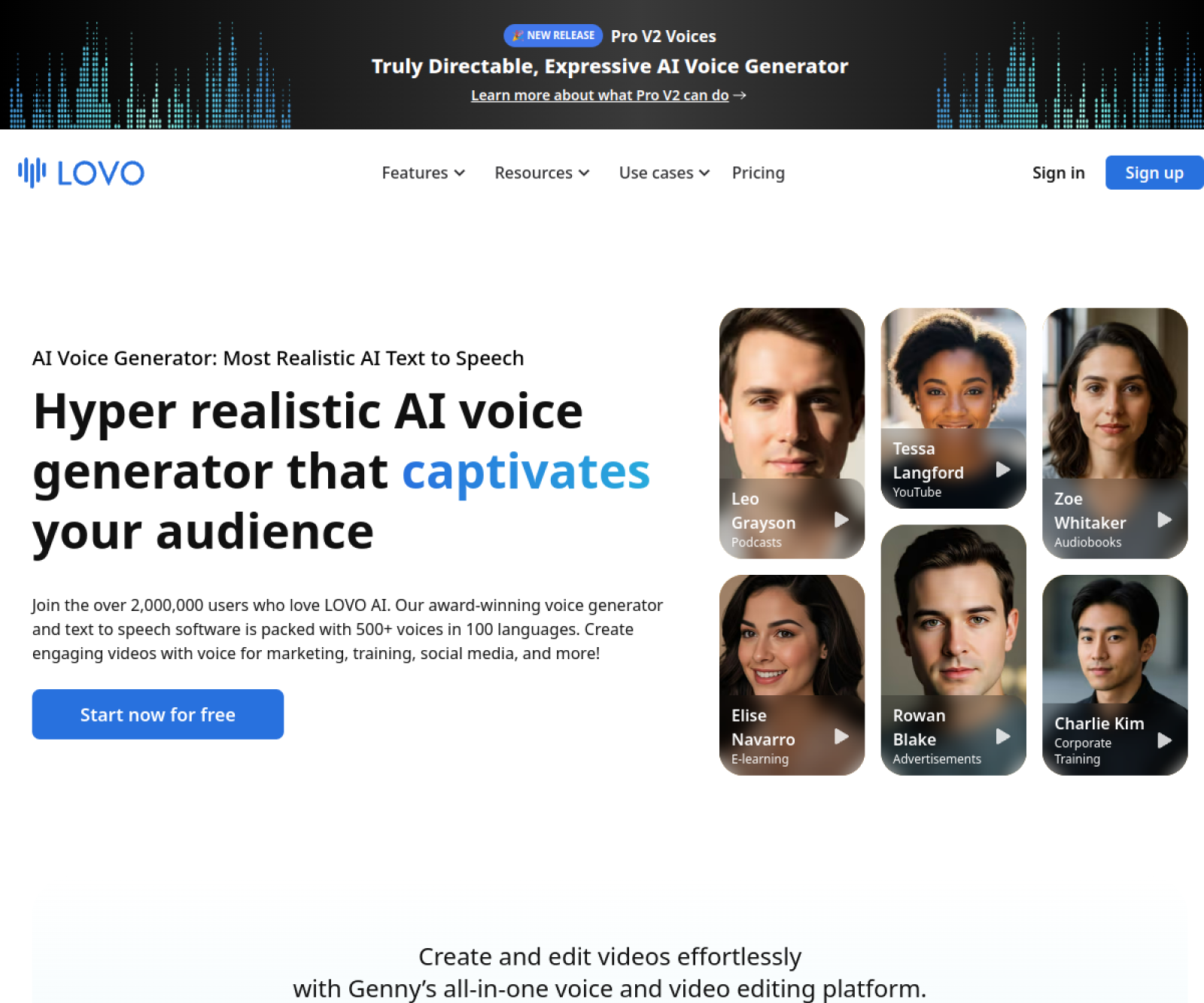 LOVO is the stronger fit for voiceover generation and lightweight media production.